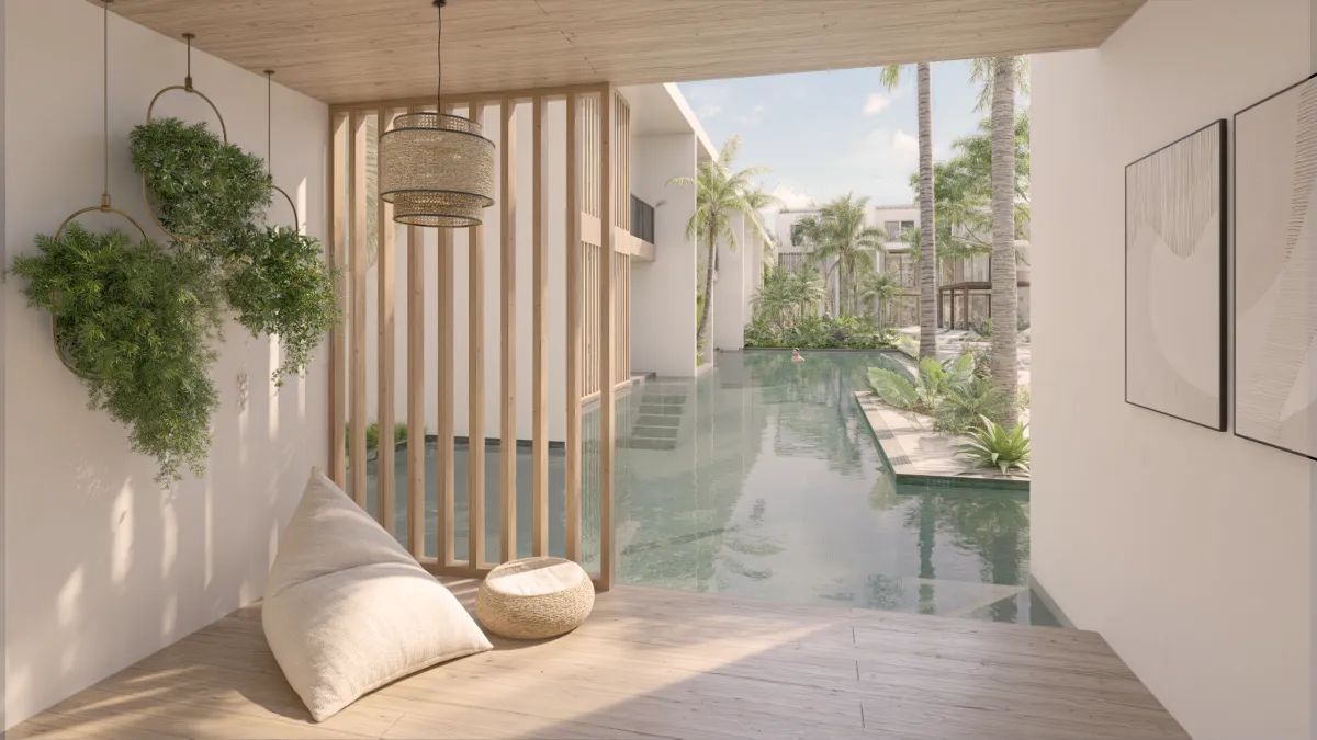 La Villa Bali ofrece espacios de vida sofisticados y altamente funcionales, diseñados para el confort y el estilo de vida tropical moderno. Con tres dormitorios y tres baños y medio, una amplia sala de estar y comedor, cocina totalmente equipada y una terraza cubierta, cada villa se complementa con una piscina privada, un exuberante jardín y estacionamiento conveniente.