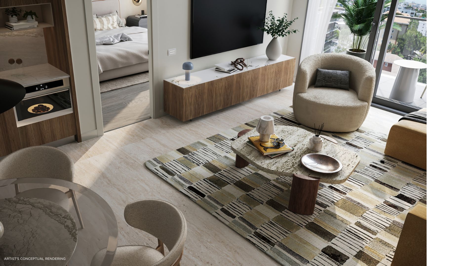 Residencias que van desde estudios hasta unidades de 1 y 2 dormitorios, con acabados refinados, terrazas privadas, vistas amplias y tecnología de hogar inteligente integrada.